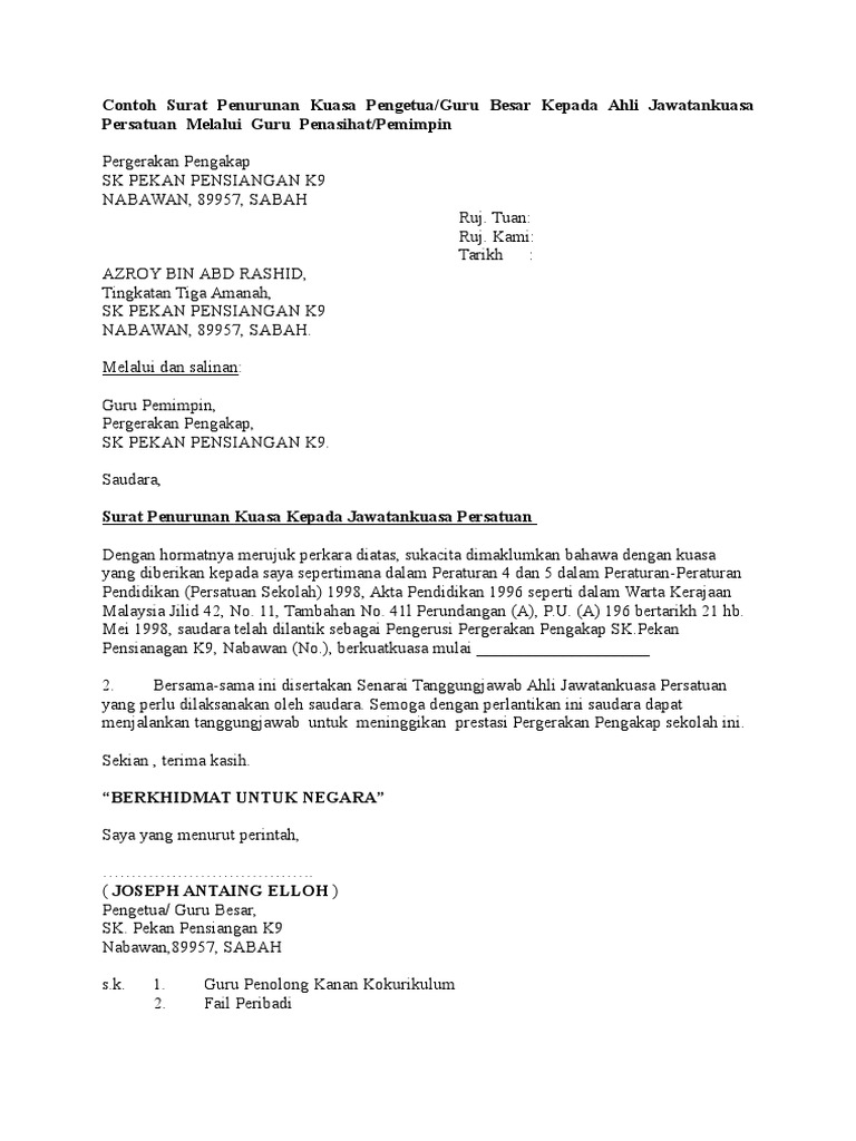 Contoh Surat Penurunan Kuasa Pengetua Pengakap Pdf